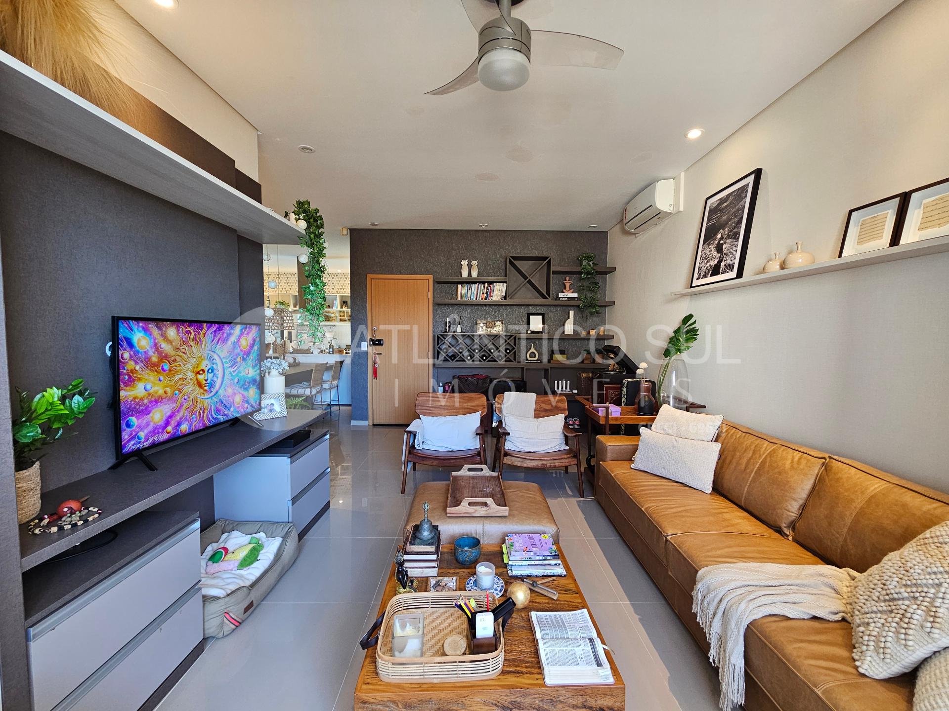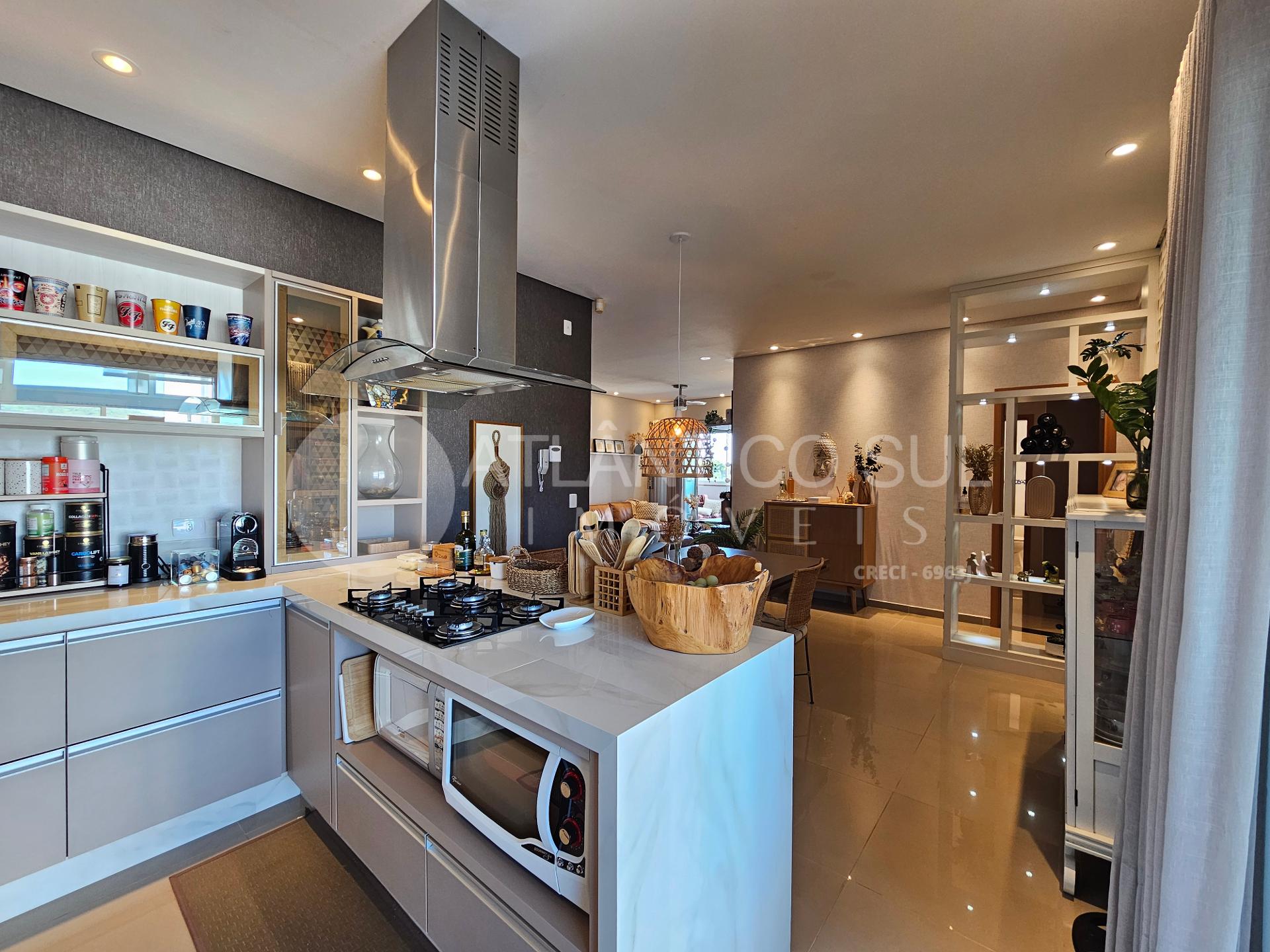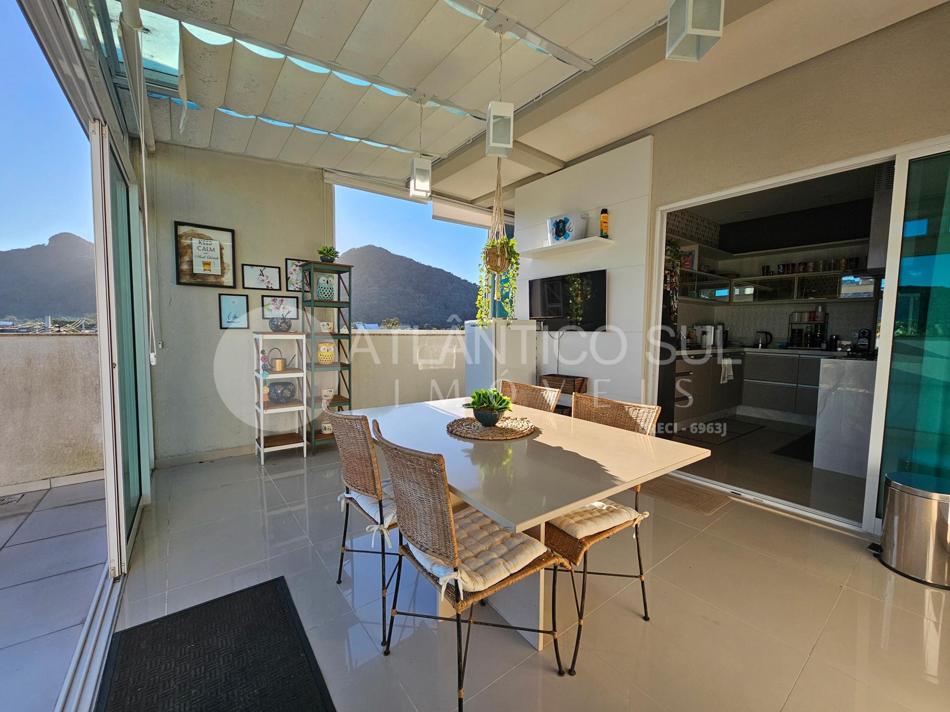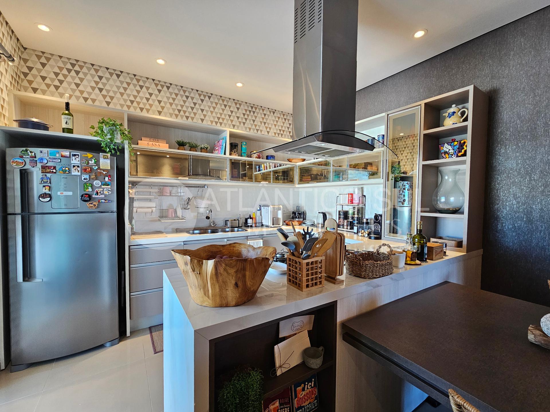 Esta cobertura é totalmente mobiliada e decorada, pronta para morar. A sala integrada à cozinha em conceito aberto amplia a sensação de espaço e luminosidade. O destaque fica por conta da área gourmet com churrasqueira, integrada ao terraço privativo, perfeita para momentos de lazer e confraternização. A lavanderia ampla, com espaço para despensa, agrega ainda mais funcionalidade ao imóvel.