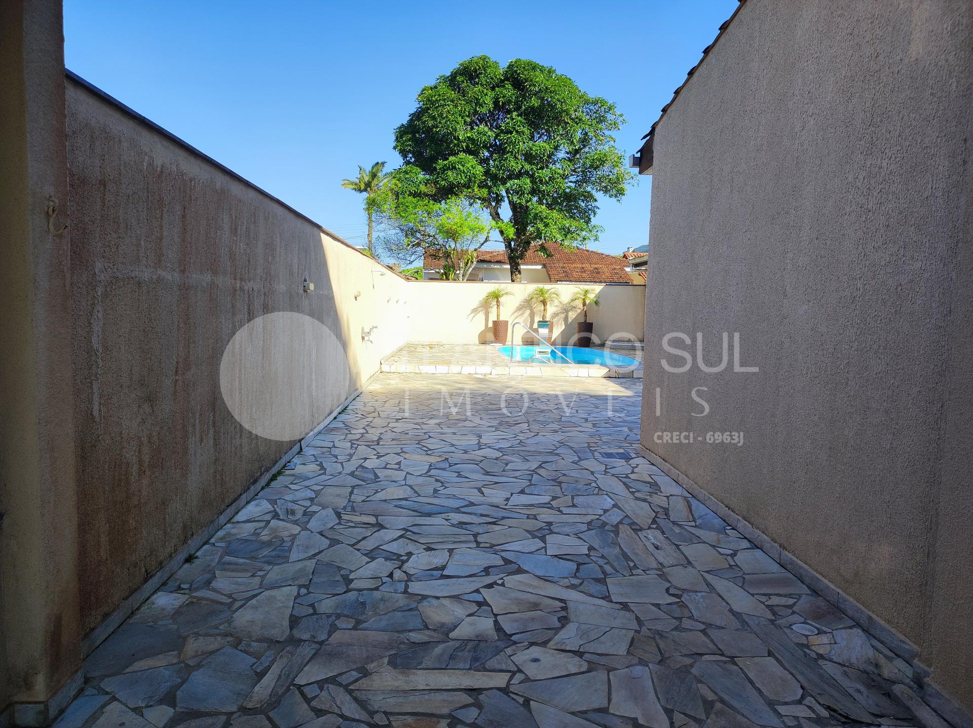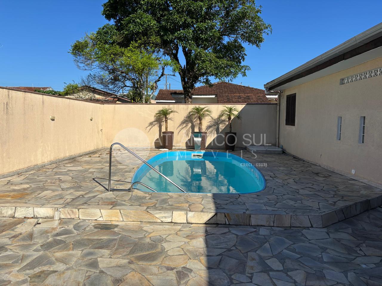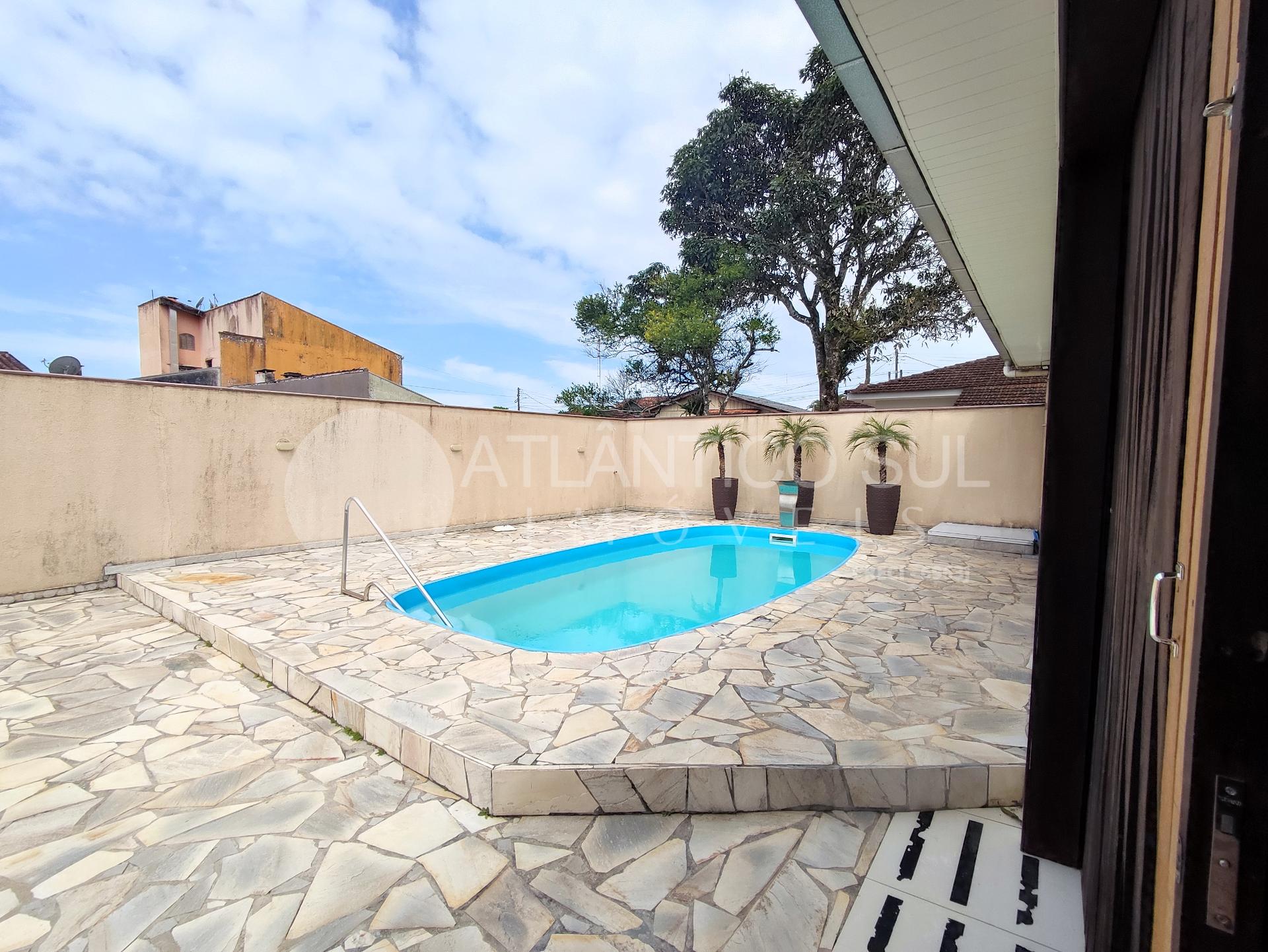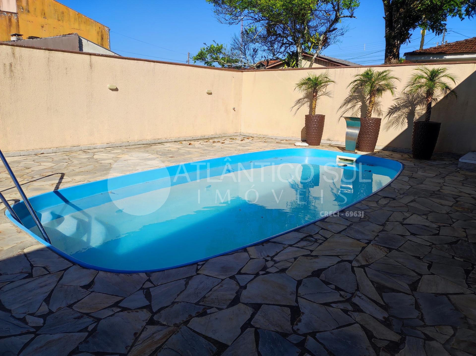Belo sobrado com piscina a apenas 270 metros do mar, localizado na região de Santa Terezinha, numa área habitada o ano todo e com infraestrutura completa.